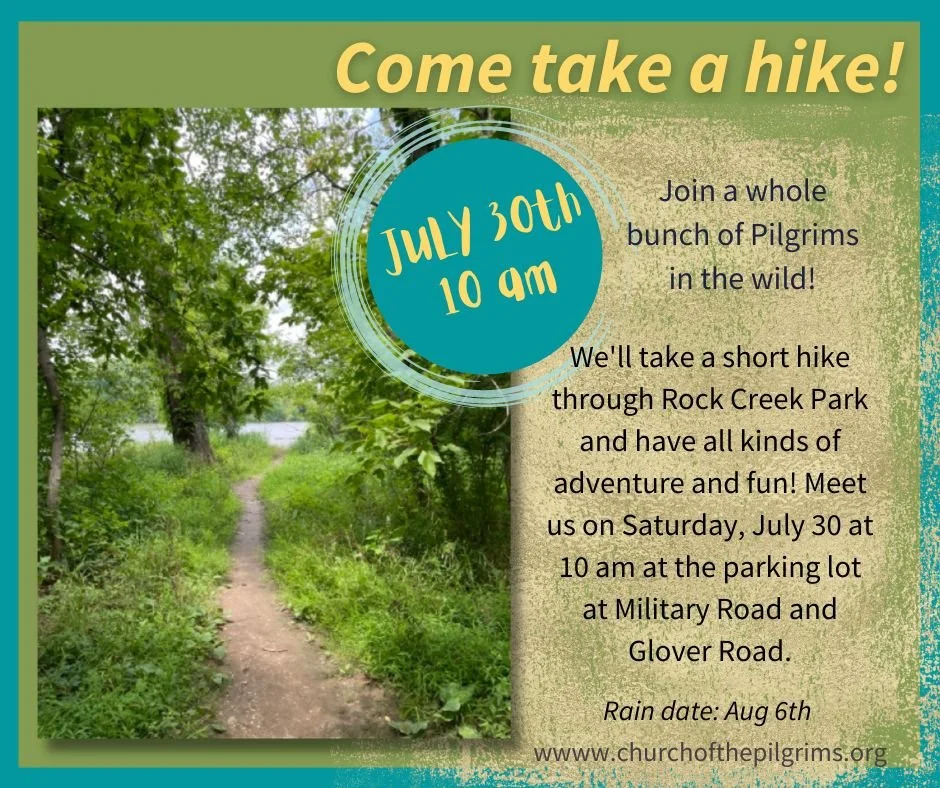 Join us at 10 am on July 30th for a hike in Rock Creek Park!
